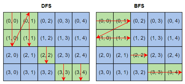 먼저, DFS로 접근하는 경우를 살펴보자. DFS는 그래프의 아래 방향을 먼저 탐색하는 방식이므로 열 -> 행 순으로 반복하도록 하였다.