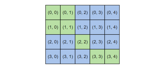 DFS 또는 BFS로 접근하기 전에 공통적인 부분 먼저 해결하고 넘어가도록 하자. 문제에서 주어진 배열에서 인접한 노드를 찾기 위해서는 현재 노드를 기점으로 위, 아래, 왼쪽, 오른쪽 노드를 전부 둘러보아야 할 것이다. 이를 위해서 임시 좌표를 다음과 같이 정해놓았다.