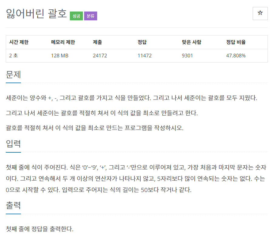+를 기준으로 나눈 리스트의 요소를 다시-기준으로 나누어주며, 이때 나눈 요소들은 정수형(int)으로 변환 후 이들의 합을 리스트에 저장한다. - 리스트의 길이만큼 역순으로 반복하며, 인덱스가 0일 경우 식의 합에 해당 해당 요소를 더하고, 그 외에는 식의 합에서 해당 요소만큼 빼준다. 인덱스가 0인 경우는 가장 첫 번째에 위치한 숫자이므로, 이를 식의 합에 더해주는 것이다. 효율성을 위하여 인덱스에 해당하는 요소를 호출할 때