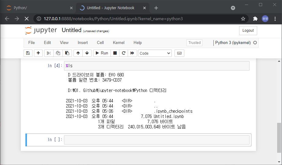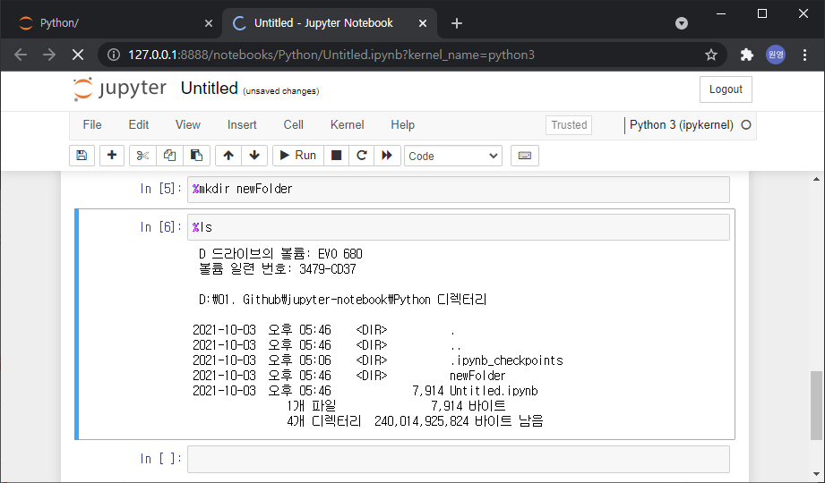 $ jupyter notebook$ jupyter notebook %< 이동할 폴더 경로 >%사용 방법