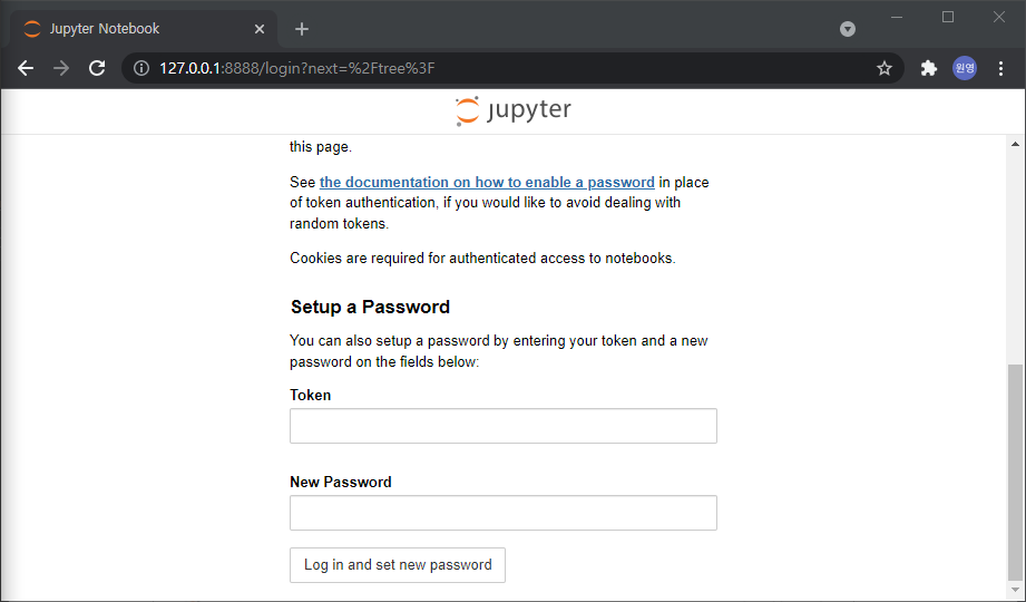 token을 입력하는 대신에 비밀번호를 사용하고자 한다면 아래 그림과 같이 Setup a Password 아래에 token을 입력하고 비밀번호를 설정하면 된다.
