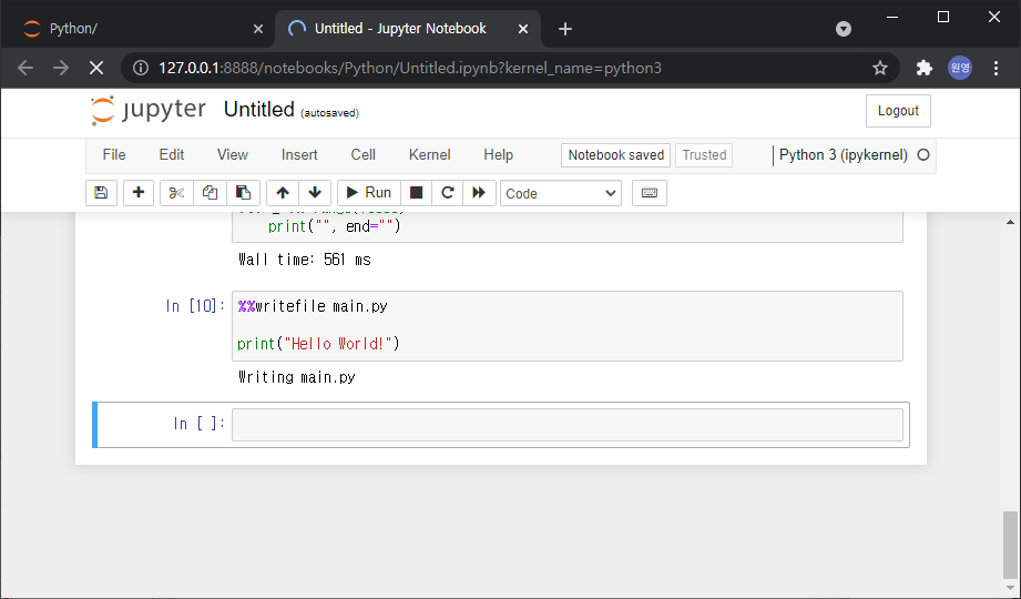%%writefile < 파일명 >을 입력하여 해당 셀의 코드를 .py 형식의 파일로 내보낼 수 있다.